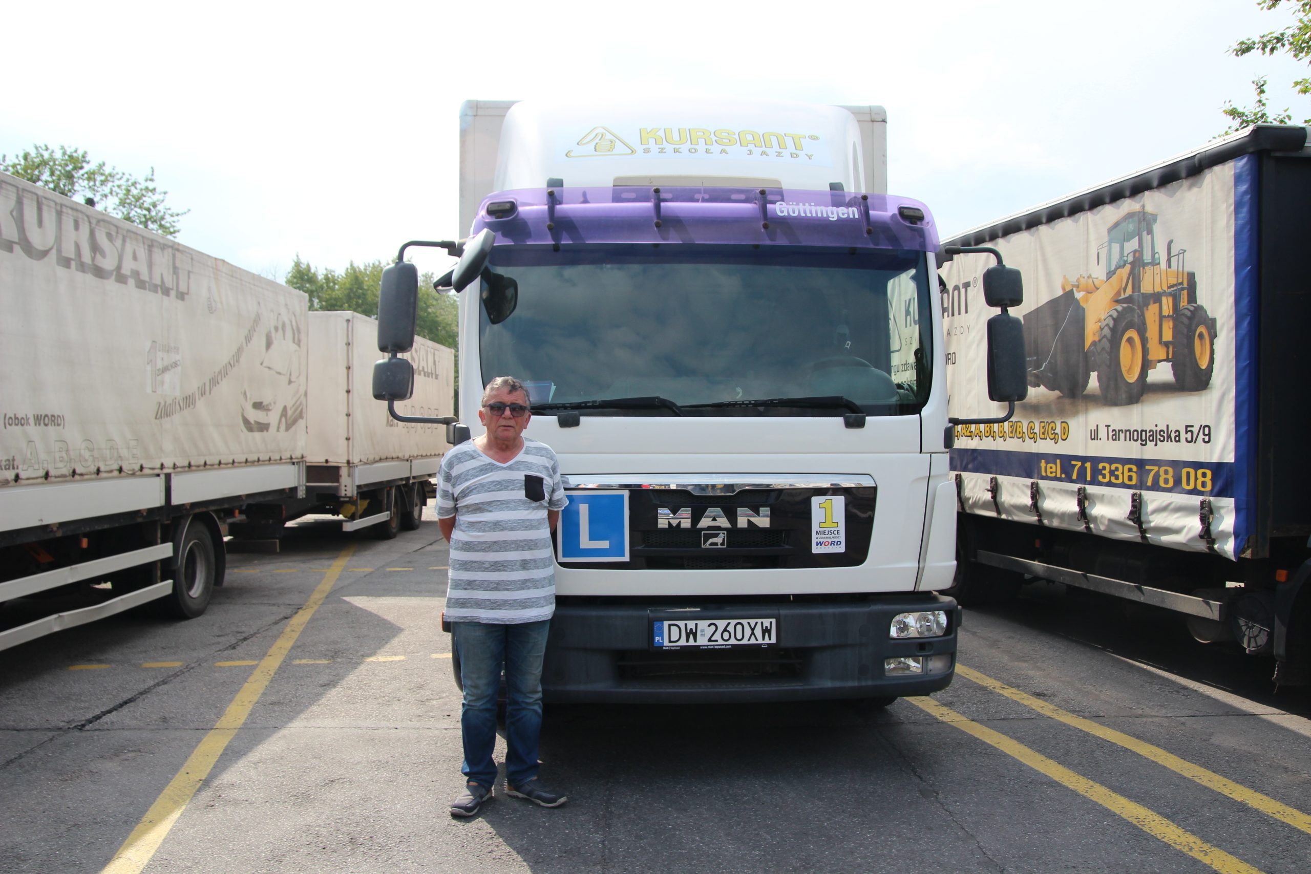 Dla kandydatów na kierowców zawodowych kat. C i kat. C+E udostępniamy flotę ciężarówek MAN i DAF, w tym model MAN 12.250 oraz zestaw DAF z naczepą. Szkolenia realizujemy zarówno na pojazdach z automatyczną, jak i manualną skrzynią biegów – kat. C (automat) oraz kat. C (manual).